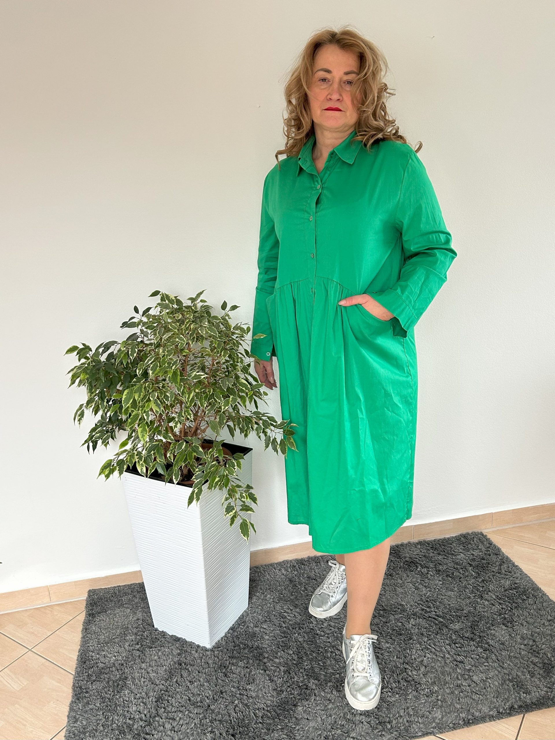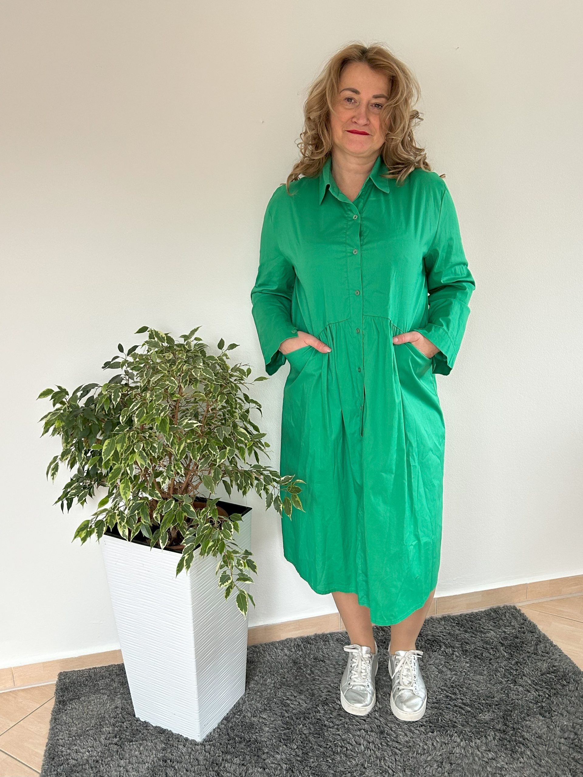 propínací v pase nabírané pouze na předním díle, s límečkem, rukávy vsazované, kapsy.